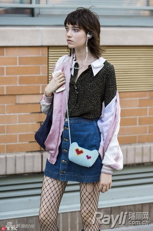 Tất lưới mắt to tạo điểm nhấn cho chiếc chân váy denim
