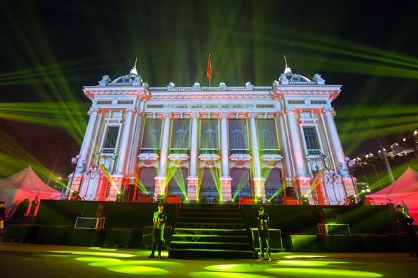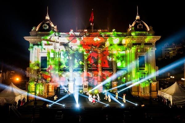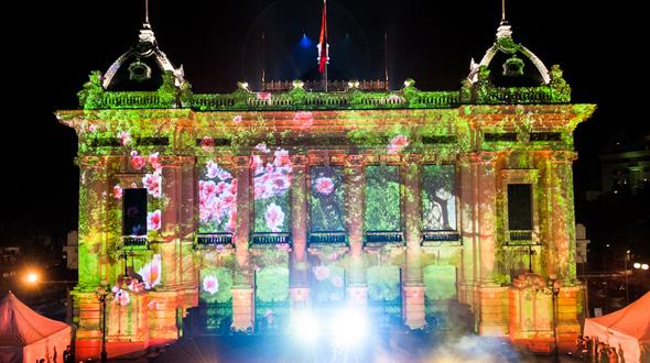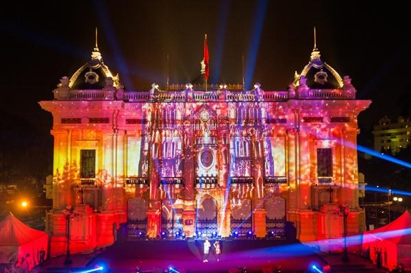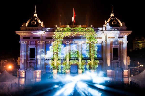 Đặc biệt, lần đầu tiên tại đây, phần trình diễn 3D mapping trên toàn bộ phần mặt trước của Nhà Hát Lớn Hà Nội gây thích thú và bất ngờ cho khán giả chứng kiến. Những phần đồ hoạ 3D mapping được thực hiện bởi các chuyên viên trong nhiều tháng đã khoác một “màu áo” mới cho Nhà Hát Lớn Hà Nội.