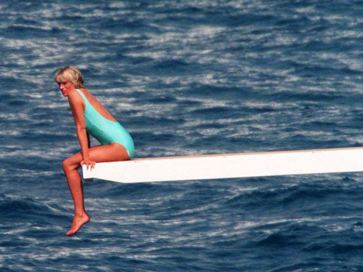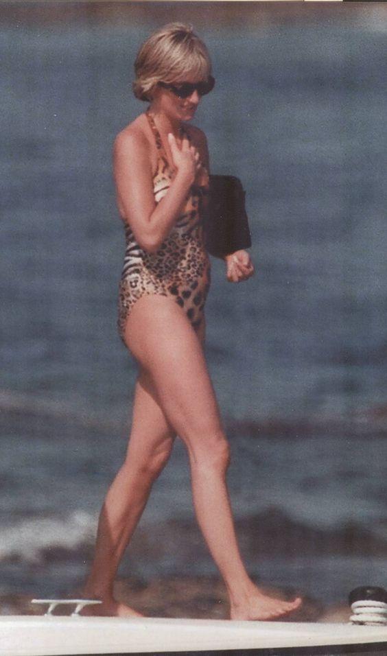Bộ đồ bơi họa tiết rực rỡ, gợi cảm này được Công nương Diana diện tại bãi biển miền Nam nước Pháp
