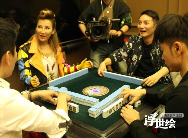 Các ngôi sao của chương trình "Tôi là ca sĩ" Coco Lee, Cổ Cự Cơ và MC Duy Gia đang ngôi chơi mạt chược trước khi chương trình lên sóng