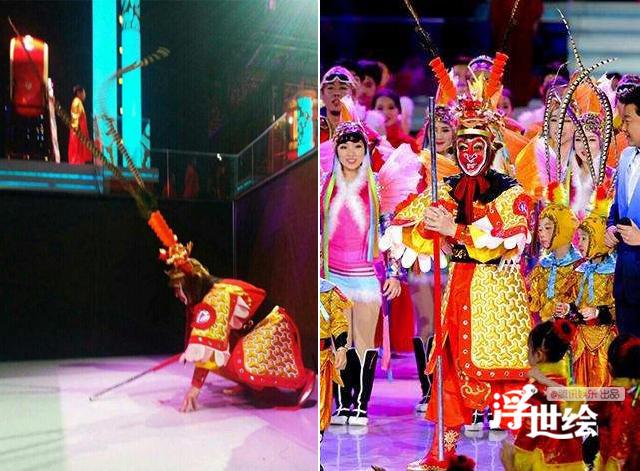 Lục Tiểu Linh Đồng hóa thân thành Tôn Ngộ Không trong một show truyền hình, nam diễn viên phải ngồi xổm sau cánh gà vì chiếc râu của trang phục quá dài