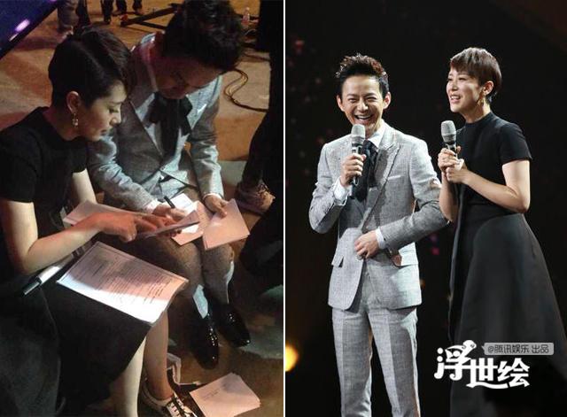 Triệu Lệ Dĩnh ngồi xổm chờ đến lượt lên sân khấu