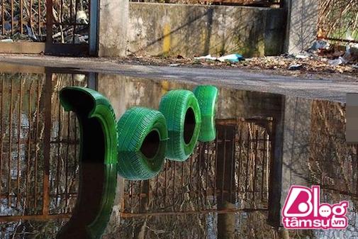 Những cái lốp xe được sắp đặt vô cùng khéo léo.