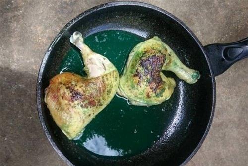 Hình ảnh đùi gà mua ở chợ về mang đi rán bỗng chuyển xanh như nước sơn