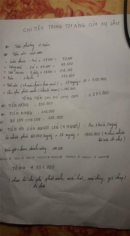 Nhật ký chi tiêu của "mẹ bỉm" hết 4 triệu đồng/tháng gây bão mạng xã hội