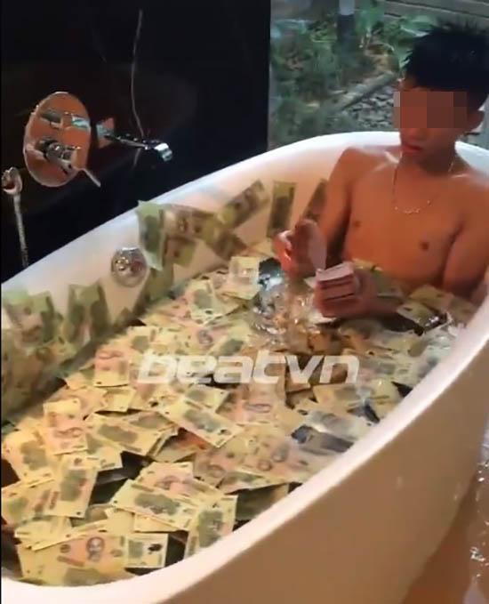 Clip một nam thanh niên tắm trong bể tiền đang khiến cư dân mạng dậy sóng.