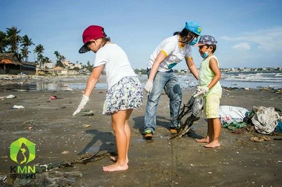 Các em nhỏ Việt Nam cũng tham gia dọn rác ven biển