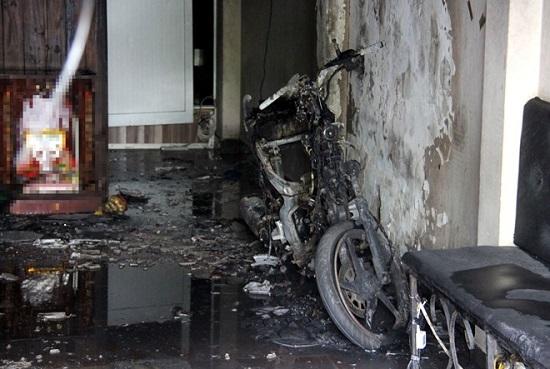 Khoảng 10h ngày 16/9, một xe Nouvo dựng trong nhà số 322 Trường Sa, quận Phú Nhuận, TP.HCM bị cháy trơ khung