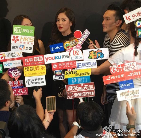 Tối qua (22/7), Song Hye Kyo đã trở thành khách mời đặc biệt tại sự kiện ở Tiêm Sa Chủy, Hồng Kông. Lựa chọn trang phục đầm đen quý phái kết hợp với kiểu trang điểm môi đỏ và tóc xoăn quý phái, Hye Kyo thực sự gây ấn tượng đặc biệt đối với báo giới và người hâm mộ ở xứ Cảng thơm bởi nhan sắc quyến rũ của mình.