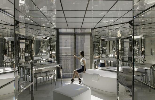 Khách sạn Cafe Royal, London, Anh: Khách sạn 5 sao ở trung tâm London này đem lại cho du khách những trải nghiệm tuyệt vời. Nhà tắm của phòng Empire được trang bị vòi sen dạng mưa, bồn tắm đá cẩm thạch tạc thủ công, TV màn hình rộng, áo choàng tắm sang trọng và các sản phẩm của hãng Floris.