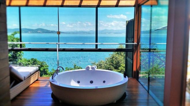 Khu nghỉ dưỡng Ponta dos Ganchos, Brazil: Nằm trên một hòn đảo tư nhân, khu nghỉ dưỡng này nhìn ra bờ biển xanh biếc, đem lại cho du khách sự riêng tư tuyệt đối. Trong biệt thự Especial Esmeralda, du khách sẽ được sử dụng một nhà tắm rộng 33 m2 được ốp gỗ, với giường nằm, phòng xông hơi khô, bể xoáy nhìn ra biển, hệ thống âm thanh riêng, một khu spa và bể bơi vô cực ngay bên ngoài.