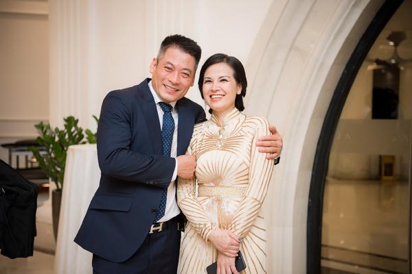 Tú Anh và ông xã ôm nhau sau khi buổi tiệc kết thúc