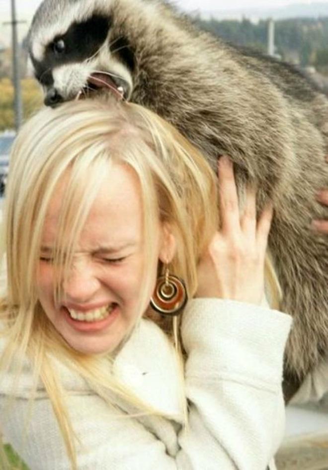 Loài động vật bé nhỏ mang tên Gấu trúc Mĩ không hiền lành vô hại như hình dáng của chúng. Điển hình là cô gái trẻ đã "lãnh đủ" khi chơi đùa với chú gấu hoang này.