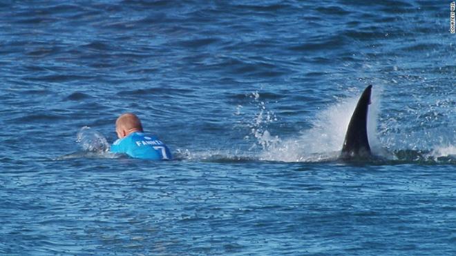 Sau khi phát hiện ra sự hiện diện của "tử thần" phía sau lưng mình, Mick Fanning đã dùng hết sức lực bơi vào bờ và thoát nạn.