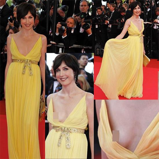 Nữ diễn viên người Pháp Elsa Zylberstein với bộ ngực mướp chảy xệ trở thành khoảnh khắc "đáng xấu hổ" trong lịch sử LHP Cannes.
