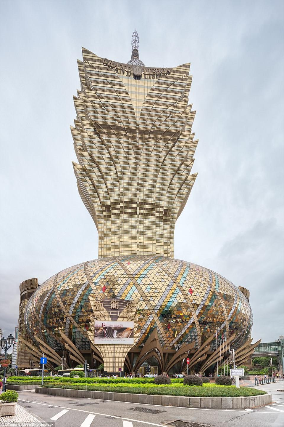 Mặt tiền đẹp lấp lánh của sòng bài Grand Lisboa ở Macau, Trung Quốc. Với lối kiến trúc độc nhất vô nhị, đây là điểm trung tâm của khu cờ bạc và nghỉ dưỡng lớn nhất ở châu Á.