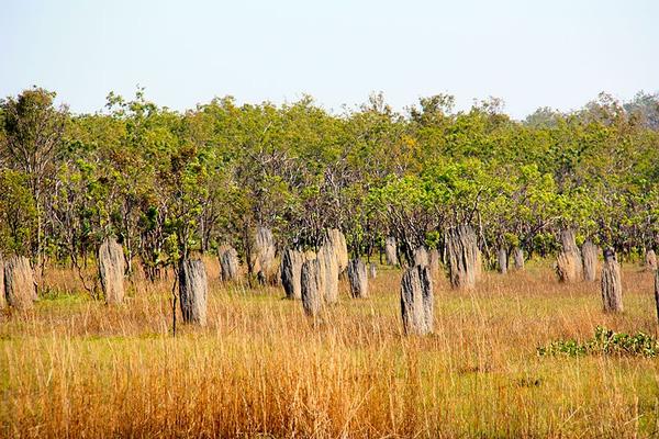 Nhìn từ xa giống như những chiếc bia mộ nhưng khi đến gần có thể thấy kích thước của chúng lớn hơn rất nhiều. Một tổ mối ở đây có thể cao tới 3m với hình dáng khá dẹt.