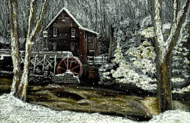 Snowing in Heaven: Bức họa này thuộc về tài khoản Flickr có tên traqair57's. Họa sĩ đã vẽ lại một ngôi nhà gỗ trong khu rừng đầy tuyết.