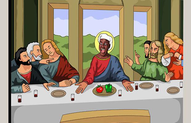 Yeezus: Bức hội họa này của họa sĩ có tài khoản Jim'll Paint It trên Tumblr và được nhại theo tranh Bữa ăn tối cuối cùng của Leonardo da Vinci.