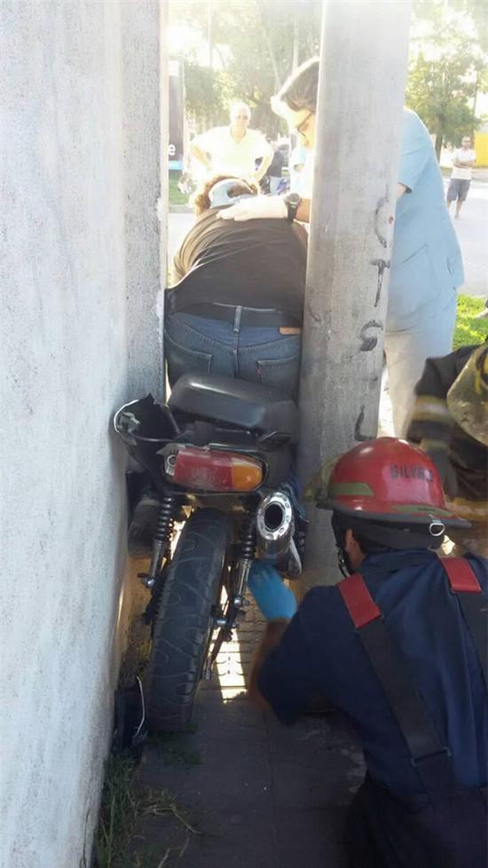Tháng 3/2016, Ramon Gonzalez, 50 tuổi, người Argentina, gặp tai nạn cực kỳ hy hữu khi đang lái xe phân khối lớn trên phố. Gonzalez lái chiếc Motomel 125 đang vào cua thì bất ngờ gặp sự cố khiến cả chiếc xe bay lên vỉa hè, kẹt luôn giữa tường và cột chống. Gonzalez cũng kẹt luôn mông ở đó và phải chờ cứu hộ đến giải cứu. Hậu quả Gonzalez bị gãy hai chân và phải nhập viện nhiều tuần.