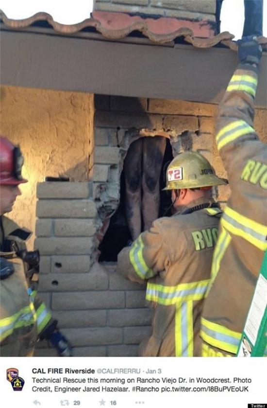 Năm 2015, một người phụ nữ tại Los Angeles đã được giải thoát sau khi mắc kẹt trong ống khói nhà chồng cũ. Người phụ nữ mắc kẹt trong 2 tiếng đồng hồ trước khi được đội cứu hỏa đưa ra ngoài. Người phát hiện ra cô gái là Tony Hernandez, chồng cũ. Tony đang làm việc thì nghe thấy tiếng khóc bên trong ống khói. Anh phát hiện ra vợ cũ của mình mắc kẹt trong đó. Dù đã cố hết sức nhưng Tony cũng không thể làm gì được mà đành gọi cứu hộ. Nhân viên cứu hộ phải phá lò sưởi mất 2 tiếng đồng hồ. Người phụ nữ cho biết cô muốn vào nhà chồng nhưng cửa khóa nên phải chui ống khói.