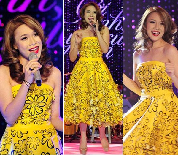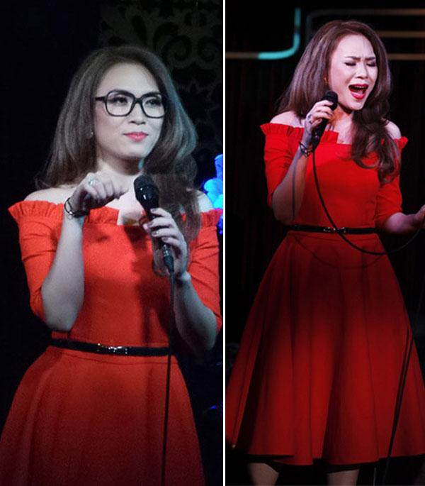 người mặc béo hơn nhưng do thiết kế xòe tạo điểm nhấn bó eo nên Mỹ Tâm lại thon gọn, năng