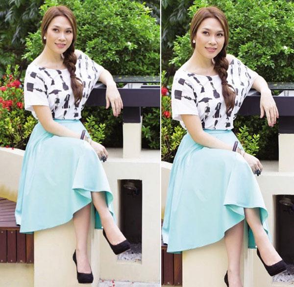 vóc dáng cô rất thon thả khác hẳn khi diện những chiếc váy bó sát cơ thể.