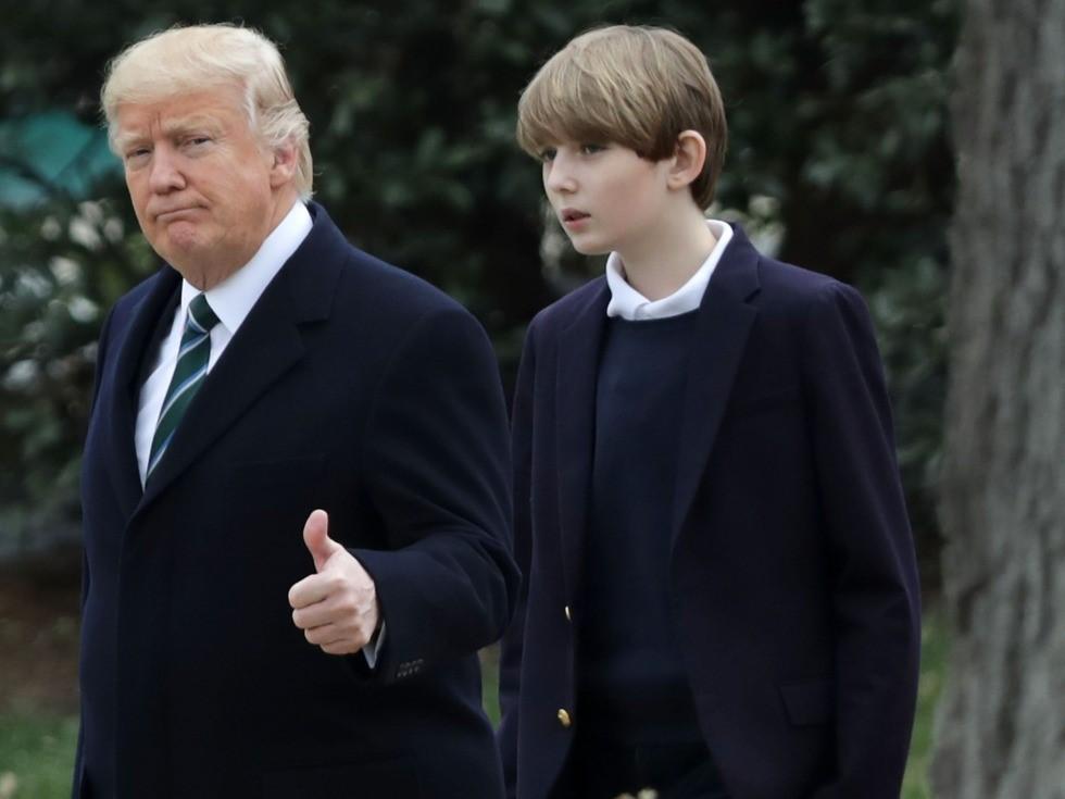 Ngày 17/3, Barron Trump lần đầu tiên xuất hiện tại Nhà Trắng, trước lúc cùng gia đình đến khu nghỉ dưỡng