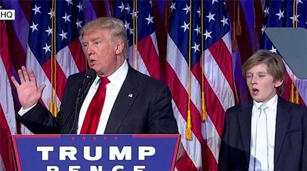 Trong lễ phát biểu ăn mừng chiến thắng của ông Donald Trump vào rạng sáng 9/11 (giờ địa phương), cậu bé