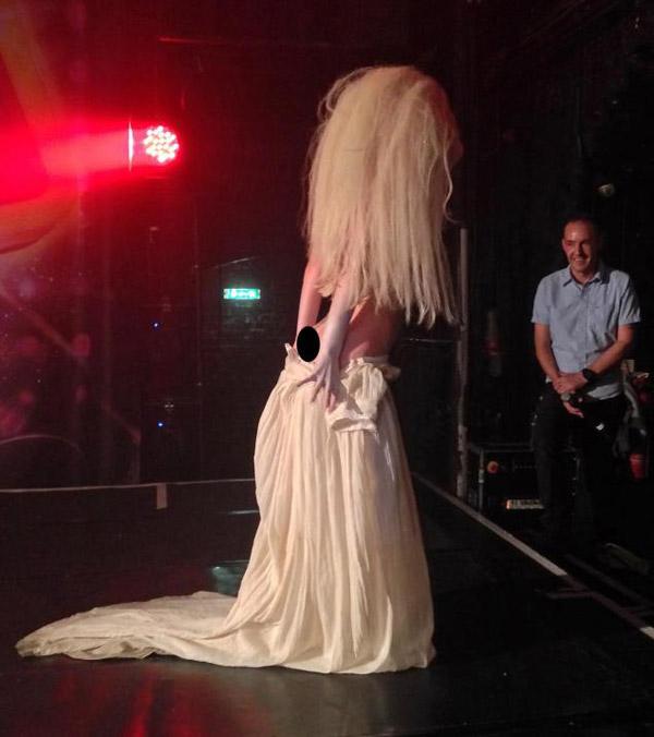 Hay trong buổi biểu diễn tại một quán bar đồng tính ở Luân Đôn để giới thiệt cho ca khúc 'Venus' - đĩa đơn được trích từ album 'Artpop', cô nàng cá tính đã không ngần ngại trang điểm và làm tóc quái dị. Rồi đến giữa phần trình diễn, Lady Gaga quyết định cởi tuột chiếc váy trắng mình đang mặc, phô bày cơ thể mình với toàn bộ khán giả bên dưới.