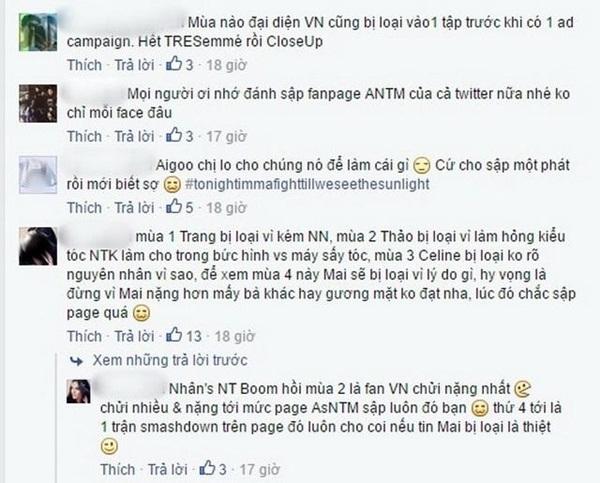 Một số fan khác thì vào tận Facebook cá nhân của các người mẫu tham gia cuộc thi để phê phán.