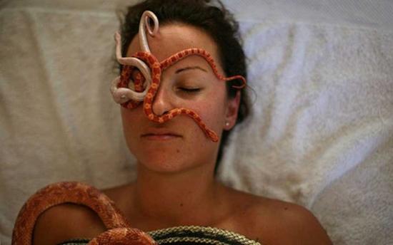 Đây là một liệu pháp chăm sóc sức khỏe và sắc đẹp rùng rợn mà ít người dám thử. Các nhân viên massage tại spa Ada Barak, Talmei Elazar, phía Bắc Israel sẽ để những con rắn: rắn Florida (vua các loài rắn), rắn ngô và rắn sữa cuộn mình trên cơ thể khách hàng. Liệu pháp này có tác dụng rất lớn không chỉ trong việc giảm đau mỏi cơ mà còn giảm stress.