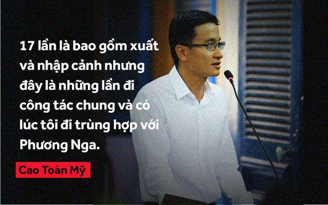 Trả lời chất vấn về những lần đi chung với Phương Nga, ông Cao Toàn Mỹ cho biết: "Trong các chuyến đi cùng nhau, tôi và cô Nga ở chung khách sạn nhưng không ở cùng phòng. Tôi cũng chưa bao giờ thanh toán cho cô Nga".