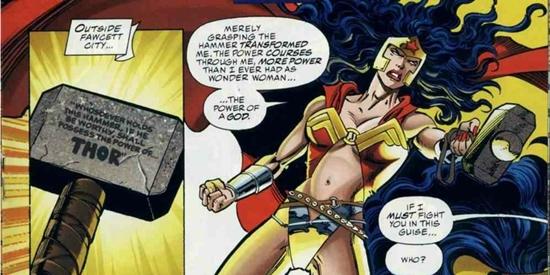 Nếu là fan của Marvel, các bạn sẽ biết số người nâng được búa Thor chỉ đếm trên đầu ngón tay. Trong tập truyện hợp tác giữa 2 hãng, Wonder Woman là siêu anh hùng DC Comics nâng được búa Thor. Dĩ nhiên, cô nàng chứng tỏ mình có đầy đủ tố chất của một siêu anh hùng mà khó ai bì kịp.