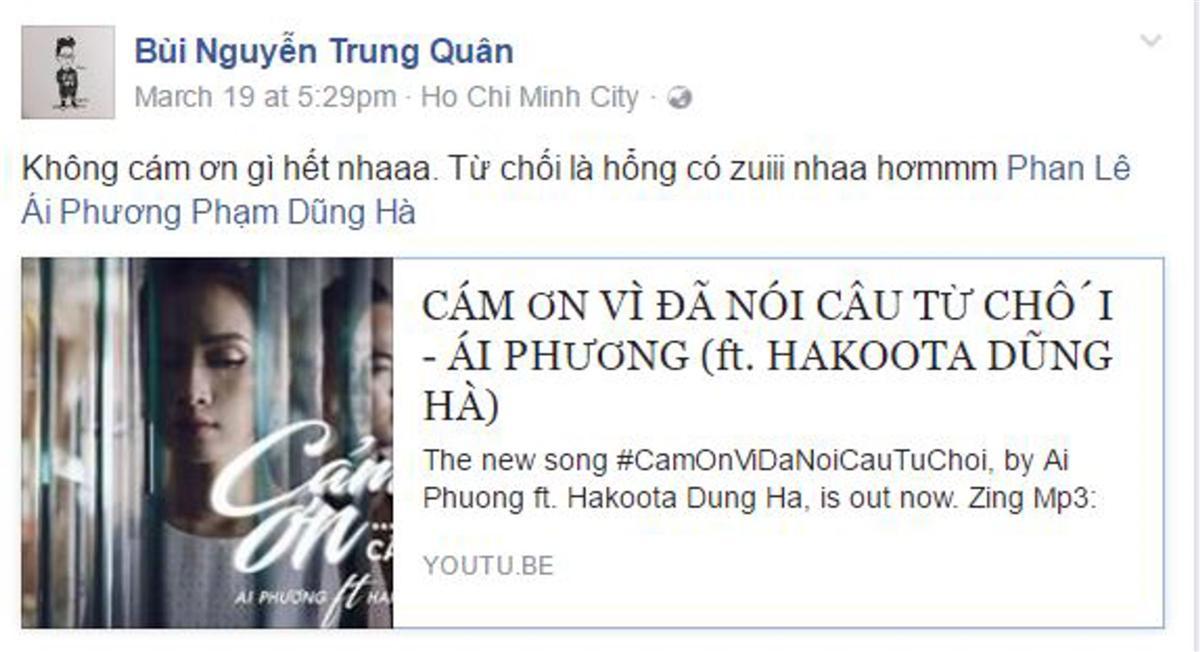 Vừa chỉ ra mắt chưa đầy một tuần, ca khúc mới của Ái Phương mang tên “Cảm ơn vì đã nói câu từ chối” đã nhanh chóng trở thành hiện tượng trên mạng xã hội.