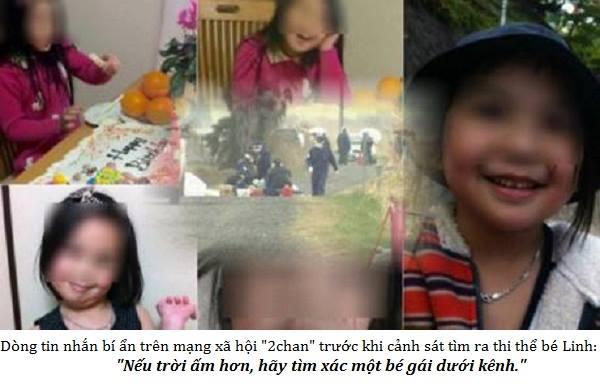 Ngày 27/3, phía cảnh sát Nhật Bản cho biết, sau khi bé L. mất tích, trên mạng internet xuất hiện những dòng tin nhắn lạ. "Vào khoảng 21h00 ngày 24/3, trên trang '2chan' - một trang mạng xã hội dưới dạng chia sẻ thông tin của Nhật Bản, đã xuất hiện đoạn thông tin: 'Nếu trời ấm hơn, hãy tìm xác một bé gái dưới kênh', cảnh sát Nhật Bản cho rằng những thông điệp trên dường như ngụ ý chỉ dẫn đến nơi tìm thấy thi thể bé gái người Việt.