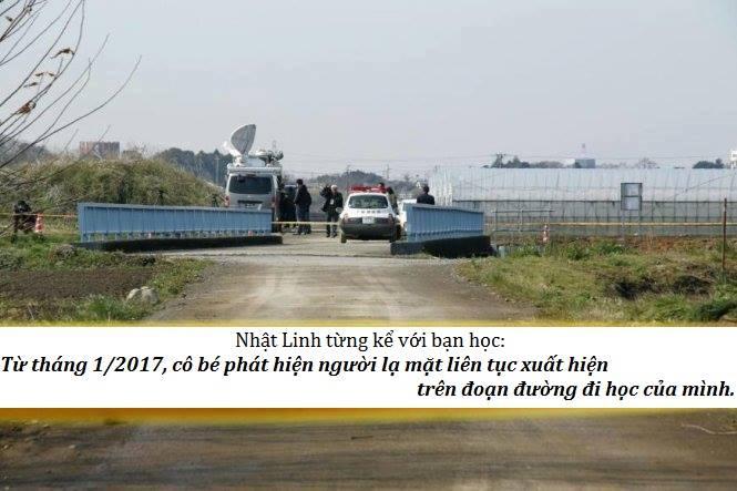 Ngày 28/3, trên trang NHK thông tin, bé Nhật Linh từng tâm sự những dự cảm bất an với bạn học cùng lớp. Cô bé nói rằng thấy sợ khi đi học một mình. Từ tháng 1/2017, Nhật Linh phát hiện người lạ mặt có dấu hiệu khả nghi trên đường đến trường. Kẻ lạ mặt này thường xuất hiện gần khu trang trại phía trước đường ray tàu hỏa cạnh con đường Tobu Noda (đây là tuyến đường quen thuộc mà Nhật Linh thường đi học một mình).