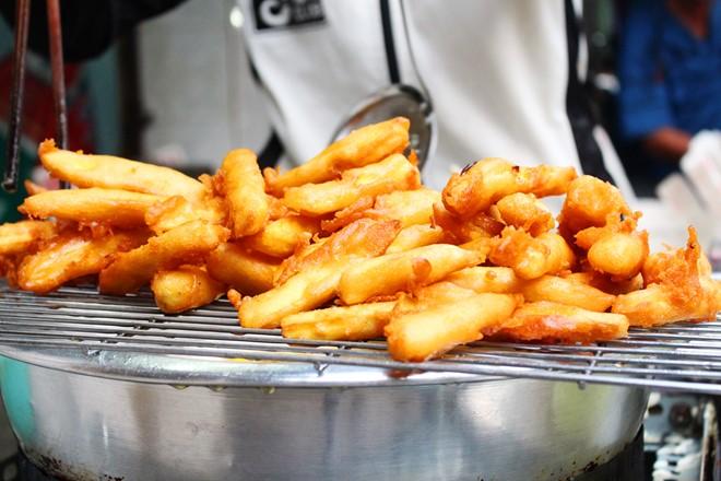 Các món bánh chiên như bột chiên giòn, bột chiên cay, đùi gà, quẩy... luôn chiếm vị trí nhất định trong lòng người Sài Gòn. Giá các món bánh dao động từ 2.000-8.000 đồng. Bạn có thể tìm thấy xe bán các món bánh này tại chợ hay các ngã ba, ngã tư lớn.