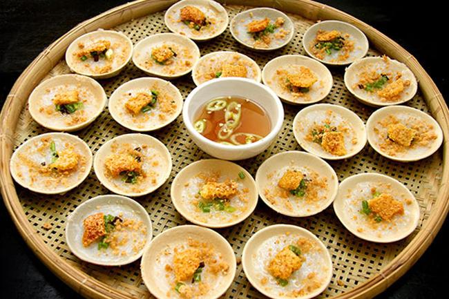 Nguyên liệu chính là bột gạo được xay nhỏ, đem ngâm nước để có độ dẻo lỏng vừa phải. Mỡ và muối đem trộn cùng với bột trên và đổ vào các chén nhỏ xinh. Mỡ sẽ giúp bánh không bị dính vào chén. Phía trên được thêm những con tôm cháy bắt mắt, hành phi và tóp mỡ thơm lừng.