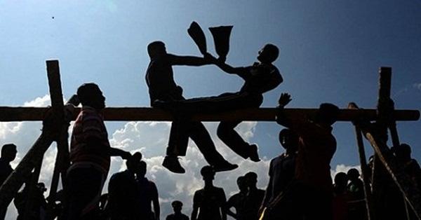 Trong lễ hội nước ở Sri Lanka có rất nhiều môn thể thao lạ lùng. Trong đó, môn thể thao được ưa chuộng nhất là môn đánh gối. Hai người chơi ngồi trên cột chênh vênh, mỗi người giữ thăng bằng bằng cách đặt 1 tay ra sau lưng và mục tiêu là phải đánh cho người kia ngã xuống nước.