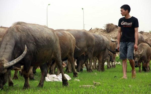 Tương tự, ngay ở giữa Thủ đô đông đúc và chật chội, tấc đấc tấc vàng, anh Nguyễn Đình Thiện (tổ 7, Yên Nghĩa, Hà Đông) lại có thể tận dụng được một bãi cỏ rộng tới 200 ha để thả đàn trâu khoảng 60-70 con có giá trị trên dưới 2 tỷ đồng. Đây là diện tích đất của một số bà con bỏ ruộng đi làm những công việc khác và những khu đất dự án quy hoạch đã lâu nhưng không sử dụng đến.