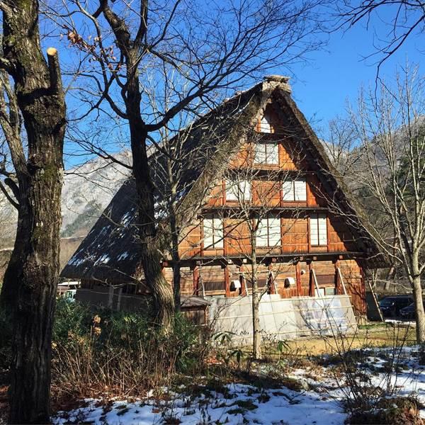trúc nhà Gasso-zukuri với phần mái hình chóp dáng như “hai bàn tay khép vào nhau lúc