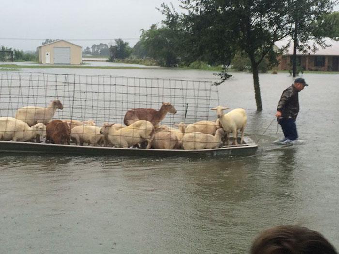 (2Sao) - Thay vì sơ tán để cứu lấy bản thân mình, những con người này đã ở lại nơi bão lụt để cứu những loài động vật thoát khỏi dòng nước lũ.