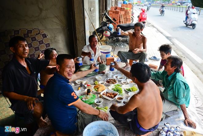 Những anh em công nhân tứ xứ, làm đủ nghề từ phụ hồ, xích lô, ba gác... tụ họp bên nhau mừng Quốc khánh. Các anh chia sẻ, tiền làm được chỉ đủ kiếm sống qua ngày nên không có điều kiện về quê, đành ở lại thành phố kiếm thêm dành dụm để dịp Tết về với gia đình.