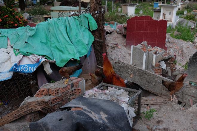 Với họ, nghĩa trang là nơi ăn chốn ở. Những người sống lâu năm trồng rau cải, nuôi gà, cho chúng