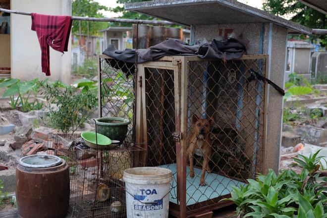 Chuồng chó nằm trên ngôi mộ cũ. Giải thích việc tại sao nuôi chó, người bảo "nuôi để giữ nhà",