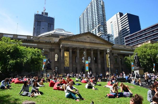 Thư viện quốc gia Victoria, Melbourne, Australia: Khắp thành phố Melbourne có rất nhiều Pokemon cho bạn tóm. Tuy nhiên, việc ngắm cảnh và chơi Pokémon Go tiêu tốn khá nhiều sức lực. Bạn có thể nghỉ ngơi một lúc, ngồi cùng những người khác trên bậc thang ngoài thư viện để huấn luyện số Pokemon bắt được. Và đừng quên vào bên trong, nơi có Ned Kelly. Ảnh: Avlxyz/Flickr.