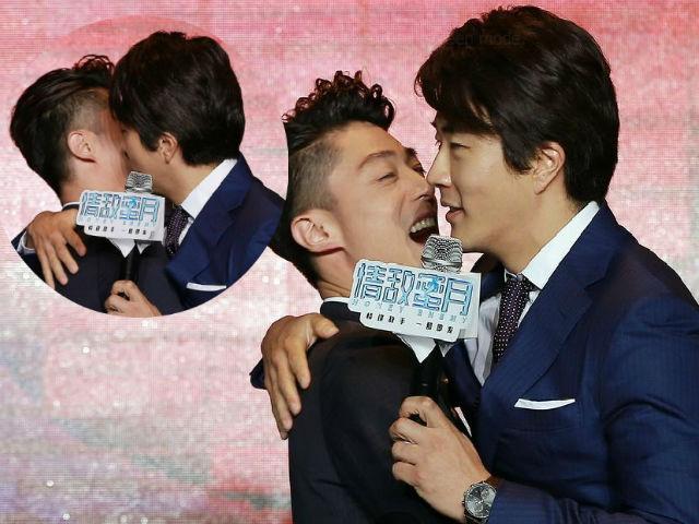 La Chí Tường và anh bạn thân Đỗ Đức Vĩ cũng không kém phần khi trao nhau nụ hôn ngọt ngào trong ngày ra mắt album mới