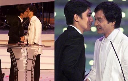 Một trong những nụ hôn lưu lại dấu ấn sâu sắc trong tâm trí nhiều người chính là khoảnh khắc Lương Triều Vỹ hôn môi Trương Quốc Vinh. Cặp đôi thân thiết sau khi đóng chung bộ phim đồng tính "Happy Together"