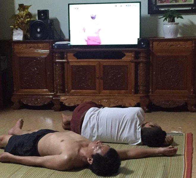 Ngủ ngon lành trước tivi mỗi mùa giải về là hình ảnh quen thuộc đối với nhiều bạn trẻ có phụ huynh mê bóng đá. Ảnh: FB.